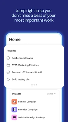 Access Asana on mobile or on the web. Project management doesn’t stop at your desk—no matter where you are, stay focused and keep your team’s work on track.