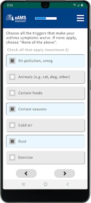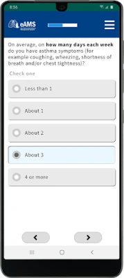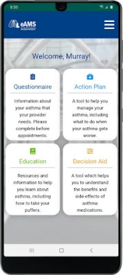 The Electronic Asthma Management System (eAMS) app is a tool to help you take control of your asthma management.