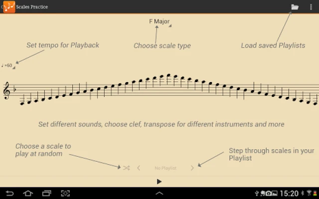 You can also save Playlists of chosen scales to play through one by one or get the app to pick a scale at random.